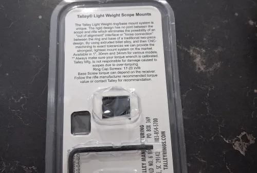 45.00 Talley Lightweight Apr 8, 2026 - 4:01 PM Shawnlynn Talley lightweight 30mm low for small ring Mauser, brand new $45.00 shipped