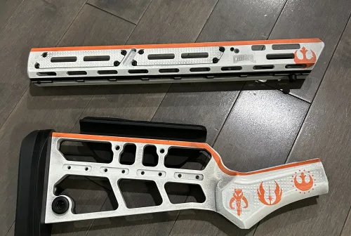 1200.00 Chisel Star Wars stock set for Marlin Jan 27, 2026 - 10:38 AM mbaraniuk Beautiful custom Star Wars Chisel stock set. Rebel scum on one side. The dark side on the other.