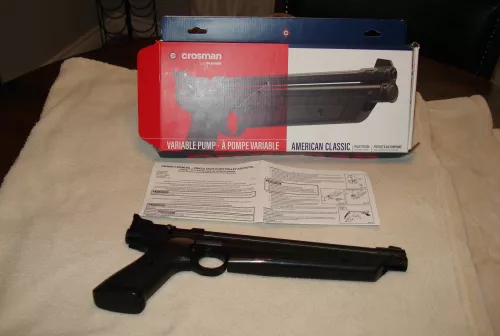 75.00 Crosman American Classic Pellet Pistol Sep 23, 2025 - 10:51 AM Rollingthunder Like new Crosman bolt action variable pump model P1377, 177 pellet.
