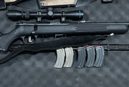 500.00 SAVAGE MK 2 22LR. WITH SCORPION OPTIC 3-9X32 Feb 14, 2026 - 7:08 PM K.Archer Savage MK 2. 22LR comes with scope and five mags. PAL required.