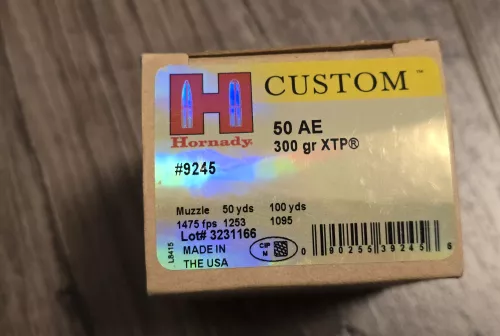 50.00 New Hornady Custom 50 AE 300Gr XTP Ammo - 20 Per Box Oct 6, 2025 - 12:58 PM Meadowroo New Hornady Custom 50 AE 300Gr XTP Ammo - 20 Per Box