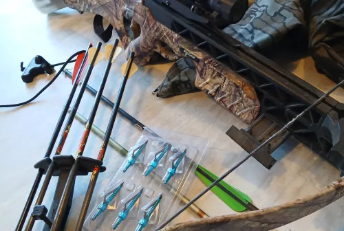 525.00 Grizzly Crossbow Oct 19, 2025 - 1:10 PM thesimpletruth Complete package , cocking aid , 2 covers , quiver , new broadheads , 30 plus bolts , as seen in