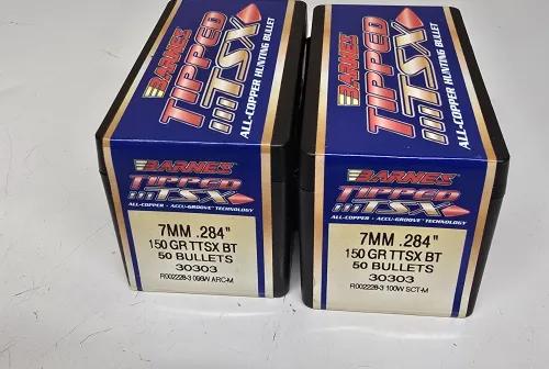 60.00 2 boxes of 150gr 7mm Barnes TTSX Feb 25, 2026 - 2:54 PM LBrown96 Unopened. Bought for a 7mm-08, but have decided on a different bullet to use.