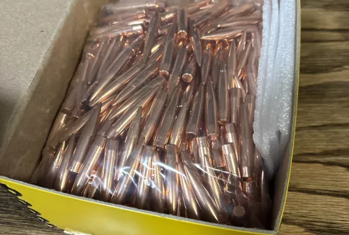 475.00 Berger 190 gr hybrid 500 Nov 6, 2025 - 5:16 AM Mikegor Full box of Berger 7mm 190 gr 500 count.