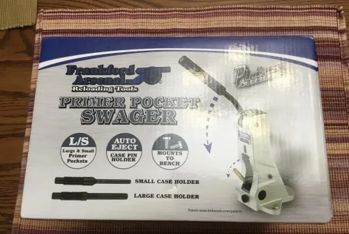 100.00 Frankford Arsenal Primer Pocket Swager New unused Jan 17, 2026 - 3:57 PM Tigerblonde Swages Large and Small military primer pocketsRetail is $150.