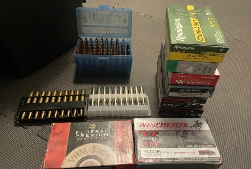 400.00 Assorted 30-06 ammo Feb 25, 2026 - 4:39 PM bvdshoots Lot of 30-06 ammo. Approx 215 rounds. Lots of good stuff