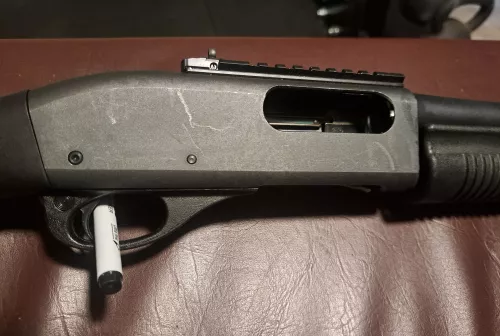 750.00 Rem 870 tactical Sep 7, 2025 - 11:26 AM LarsJohnson Remington 870 tactical with ghost ring sights. Has some scuffs and wear marks.