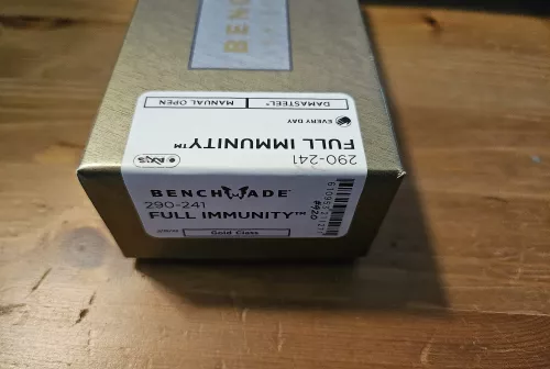 575.00 Benchmade gold class full immunity Sep 28, 2025 - 11:52 AM Tinmasher Up for sale is a benchmade full immunity with damasteel blade and carbon fiber scales.