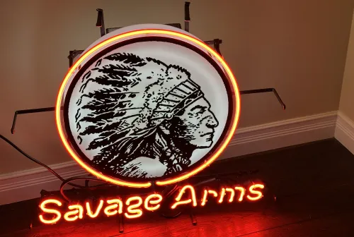 SOLD 2000.00 Authentic Savage Arms neon sign Feb 8, 2026 - 10:21 AM crazyjay1982 This was an original sign that was used for marketing Savage Arms in a gun store.