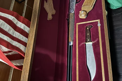 2475.00 Winchester commemorative legendary frontiersmen with presentation case and Bowieknife combo Oct 22, 2025 - 11:48 AM crazyjay1982 Here is a unique combination for somebody that would like to display their commemorative rifle.