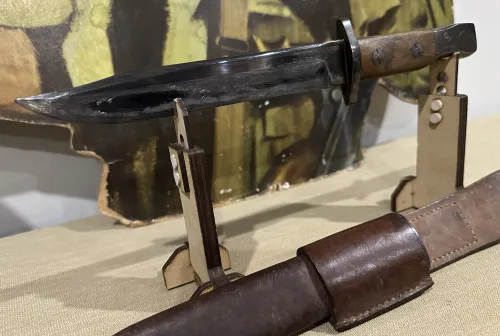 365.00 WW2 Pacific Coast Militia Rangers fighting knife Jan 31, 2026 - 2:05 PM crazyjay1982 This Ross rifle bayonet was converted to a PCMR knife during World War II and issued to rangers t