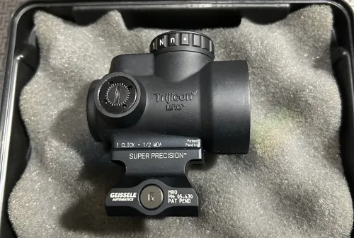 900.00 Trijicon MRO Package Mar 31, 2026 - 6:54 PM PGibson86 Excellent condition Trijicon MRO with Geissele 1/3 Co-Witness Super Precision Mount