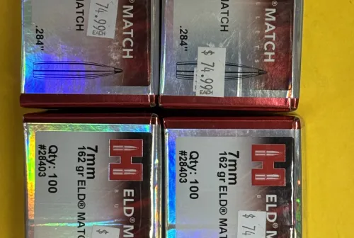 70.00 7 mm eldm Feb 28, 2026 - 9:13 AM tld I have 4 boxes of 162 gr hornDY ELDM BULLETS ALL FROM THE SAME LOT I would like to sell them all