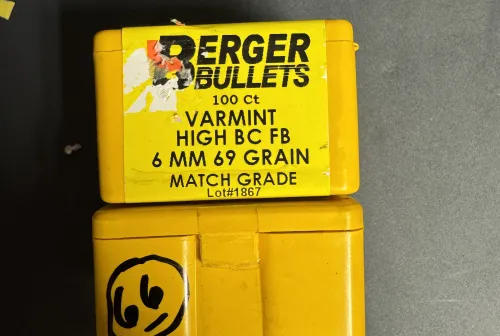 75.00 Berger 69 gr high bc Feb 28, 2026 - 9:21 AM tld 166 Berger 6 mm 69 gr high. Bc fb bullets for sale 75$ plus 20 $ shipping