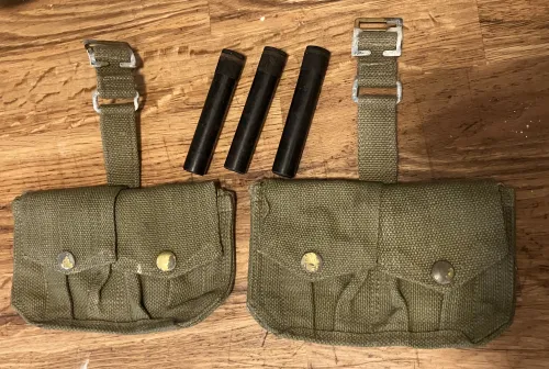 20.00 P47 British magazine pouches and oilers Apr 12, 2026 - 12:40 PM GradyJ Pair of P37 Ammunition Pouch3 Lee-Enfield Oilers $20 plus shipping