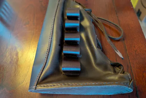 35.00 Leather buttstock ammunition holder Feb 7, 2026 - 6:19 AM subcapt1974 Brand New leather buttstock ammunition holder for 30 cal ammunition. Black color.