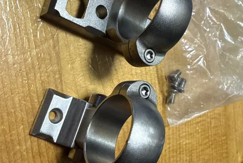 80.00 Leupold STD mounts with Rings stainless steel Mar 15, 2026 - 10:58 PM cnca Shining Silver matte stainless steel Leupold mounts with rings, with 4 screws, this mounts have a