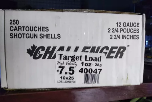 125.00 Cartouche Challenger Target 12GA , #7.5 ou #8, 1oz, 1300FPS 28gr Aug 26, 2025 - 7:55 AM AdaMouri Cartouche Challenger Target 12GA , #7.5 ou #8, 1oz, 1300FPS 28gr