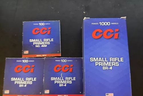 1357.00 Small rifle primers Oct 6, 2025 - 5:41 PM colegreenberg I have 12 trays of BR-4 primers and 1 tray of No.400 primers.