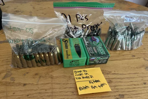 SOLD 225.00 7MM-08 Brass & .284 7mm Bullets Oct 3, 2025 - 6:53 AM louieboy 95 pcs of brass and nickel fully prepped, (sized, trimmed, primed) and ready for powder!