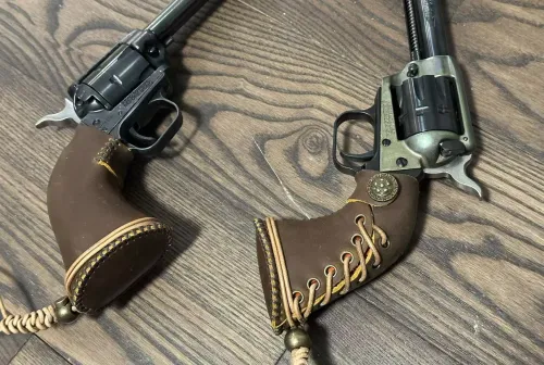 70.00 Handmade Vintage Leather Grip Cover for revolver Dec 14, 2025 - 5:04 PM Luckyyy47 This beautifully designed grip cover is made to fit most revolvers with a Colt 1873–style “plow h