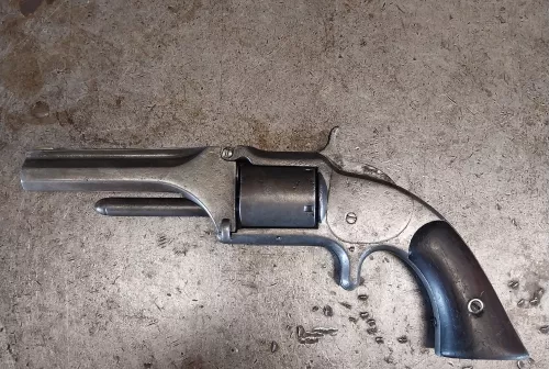 SOLD 600.00 Smith and wesson 1 1/2 32 rimfire Oct 20, 2025 - 1:15 PM JohnC In good shape. Indexes and locks up nice. Decent finish. Pitting in bore nice rifling.