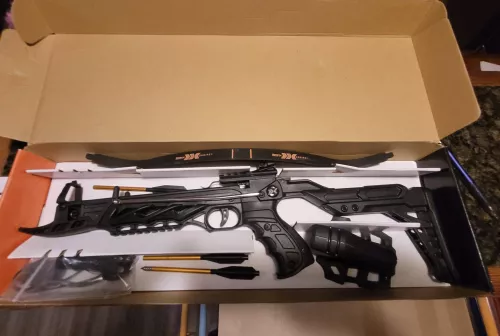 150.00 Brand new crossbow Oct 9, 2025 - 9:51 AM RyanRiggs86 Brand new Bear Desire XL pistol crossbow, still in packaging. $175 may trade