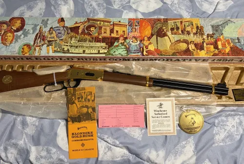 SOLD 1499.00 **Winchester 94 Klondike Gold Rush (Free shipping)** Best Price now listed Jan 24, 2026 - 2:35 PM Whatz4up Hello, I have an Unfired As New in Box Klondike Gold Rush Commemorative Winchester 94 for sale.