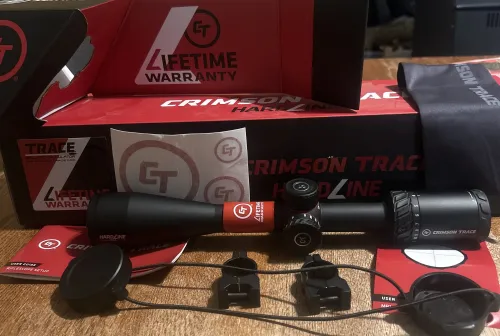 250.00 Crimson Trace Hardline. Dec 7, 2025 - 7:12 PM Jon schwark Crimson Trace Hardline. 1” tube. 4-16x42. MR1-MOA reticle.