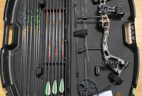 400.00 Bear Cruzer lite Jan 3, 2026 - 3:04 AM The waffe man 77 Bear Cruzer lite with a 3 pin trophy ridge sight, trophy ridge whisker biscuit, 4 arrow fixed qui