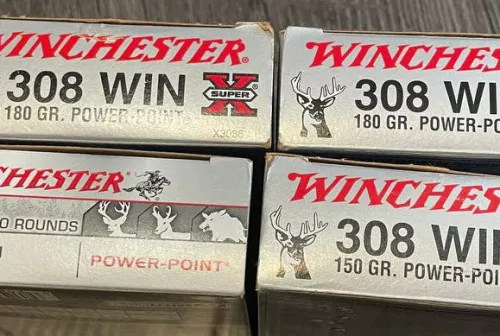 155.00 .308 Win Winchester Super X 150Gr. and 180Gr. Sep 25, 2025 - 3:09 PM Demargon selling four boxes of .308 Win Winchester Super X ammo: 2 boxes (-5 rounds) of 150Gr