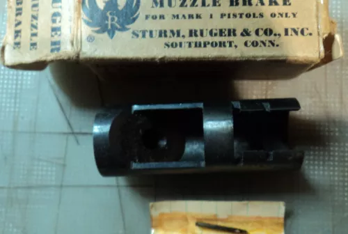 50.00 Ruger Mark 1 Muzzle brake & Blackhawk Scope mount Oct 20, 2025 - 7:33 AM Trap Shooter RUGER MKI .22LR MUZZLE BRAKE , BLUED STEEL, NEW. STRUM, RUGER MARKED With box - $50.00
