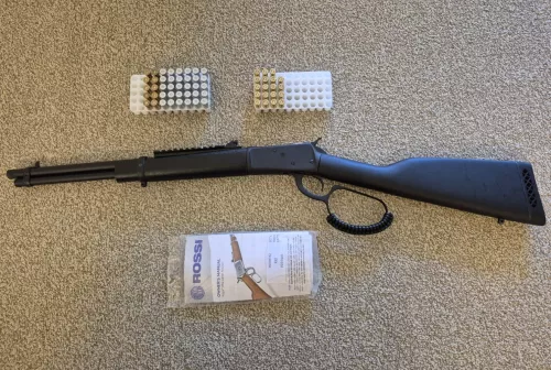 1400.00 Rossi R92 Triple Black .357 Mag / 38 Special Sep 18, 2025 - 6:39 PM Outdoorsman8 Black coated wood for weather resistance. Peep sight with rail for dot sight or scope.