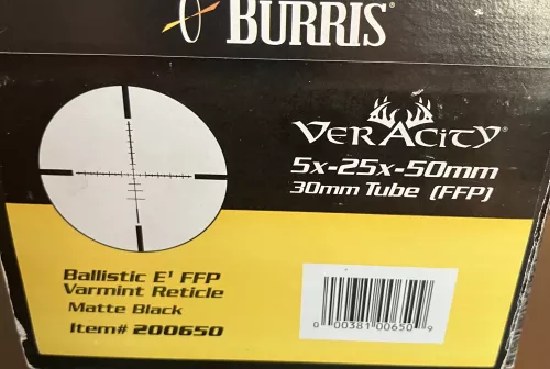 1000.00 Burris Veracity 5-25x50 Sep 30, 2025 - 11:07 PM bcshadow New in box, Burris Veracity 5-25×50, 200650, FFP, ballistic E1 moa Varmint reticle, 1/4 moa click
