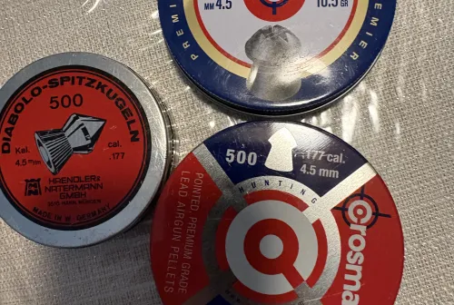 30.00 177 calibre pellets Dec 11, 2025 - 2:15 PM cjjp69 3 tins of 177 calibre pellets being sold 10 dollars a tin