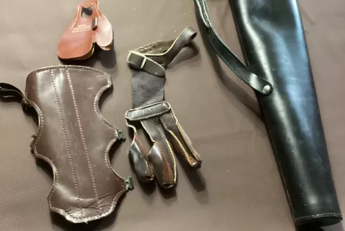 45.00 Archery quiver, etc Oct 20, 2025 - 11:41 AM retread Belt mounting archery quiver Three finger glove Arm protector