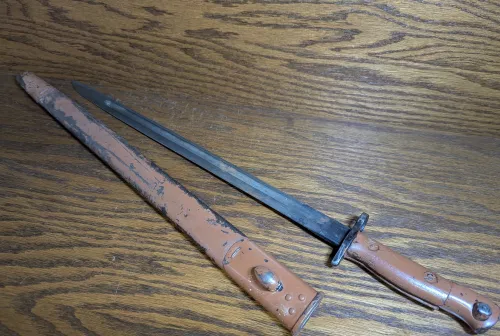 300.00 Pattern 1907 Bayonet Sanderson July 1915 - Old British SCC2 Brown Paint Sep 24, 2025 - 5:56 PM chevneck Looking to sell a pattern 1907 bayonet made by Sanderson in July of 1915.