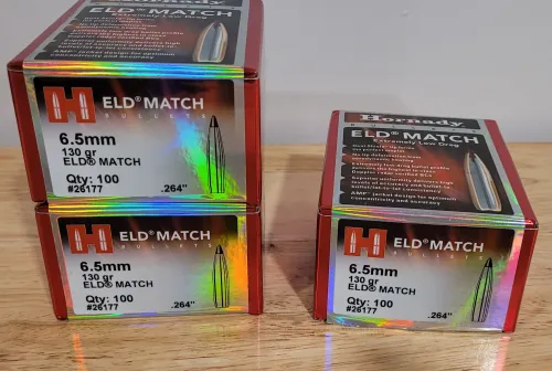 SOLD 115.00 Hornady 6.5 eldm 130gr bullets Apr 12, 2026 - 9:47 PM freeride 2 sealed boxes of 100 200 total bullets for $115 shipping is $20 canada wide