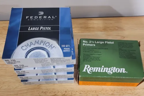 SOLD 70.00 Large pistol primers Apr 13, 2026 - 12:23 PM freeride Primers:Remington 2.5 Large pistol (1000 count) - $130