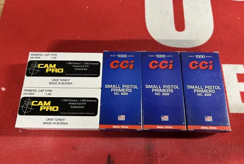 120.00 Sm Pistol Primers Jan 16, 2026 - 10:38 AM wb506 $120 per brick. 3x for $330 or all 5x for $500