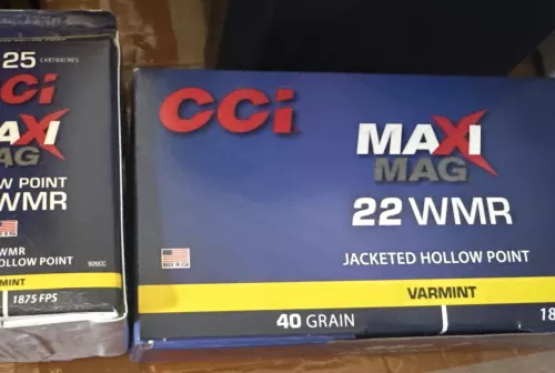 90.00 22WMR ammo Nov 13, 2025 - 11:33 AM tank33023114 1. CCI 22 WMR, Maxi-Mag, 40 Grain JHP Box of 200, $ 90 per box.