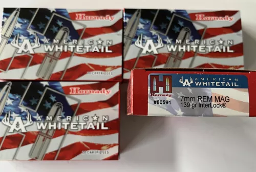 12345.00 7mm Rem Mag Nov 3, 2025 - 12:25 PM tank33023114 1. Hornady American Whitetail 7mm Rem Mag, 139 grain and 154 grain, InterLock.