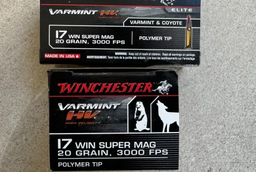 45.00 17 WSM Feb 27, 2026 - 1:00 PM tank33023114 Winchester Elite Varmint HV( high Velocity), 17 Win Super Mag, 20 grain polymer tipped, 3000 feet
