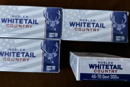 60.00 45-70 GOVT Nosler Mar 4, 2026 - 8:06 PM tank33023114 45-70 GOVT, Nosler Whitetail Country Straight-Wall, 300 grain flat nose soft point, $60 per 20 ro
