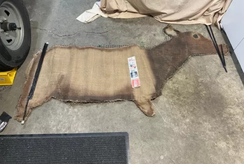 25.00 Cow Elk Decoy Sep 28, 2025 - 3:45 PM Rick Mercier This is a cow elk air brushed on burlap both sides with plastic grid in between.