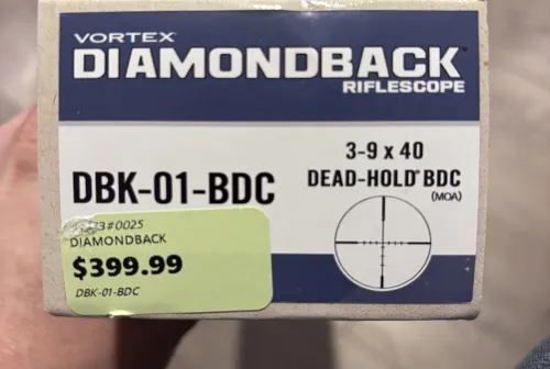 320.00 Brand new Vortex diamondback 3-9x40 Feb 1, 2026 - 1:05 PM Cmac44 Brand new in box. Model DBK-01-BDC