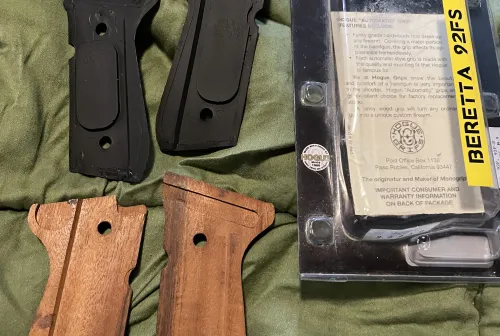 125.00 Hogue beretta 92/96 grips Feb 8, 2026 - 11:17 AM bps540 Hogue wood goncalo grips plus the black hard plastic ( not rubber) grips.