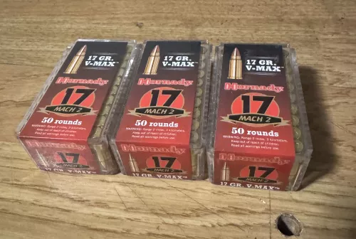 15.00 17 mach2 Hornady v-max Oct 12, 2025 - 12:12 PM stugatz Selling 3 boxes of 17 mach2…$15 for 50 rounds=1