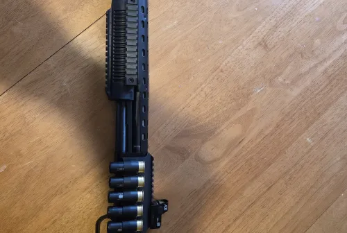 500.00 Mavrick 88 custom build Jan 14, 2026 - 5:31 PM Joshua niemi Mavrick 88 with custom chopped 18.5 inch barrel ,heatsheild,picatinny rail with shell holde