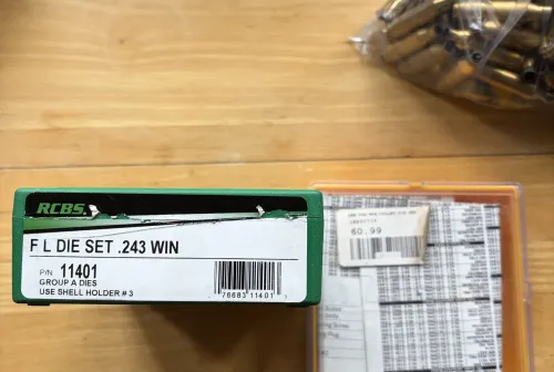 60.00 243 dies and once fired brass Apr 12, 2026 - 12:03 PM quinnskey RCBS 243 FL dies used to decap 20 brass. $60 Lee collet die decent shape. $45
